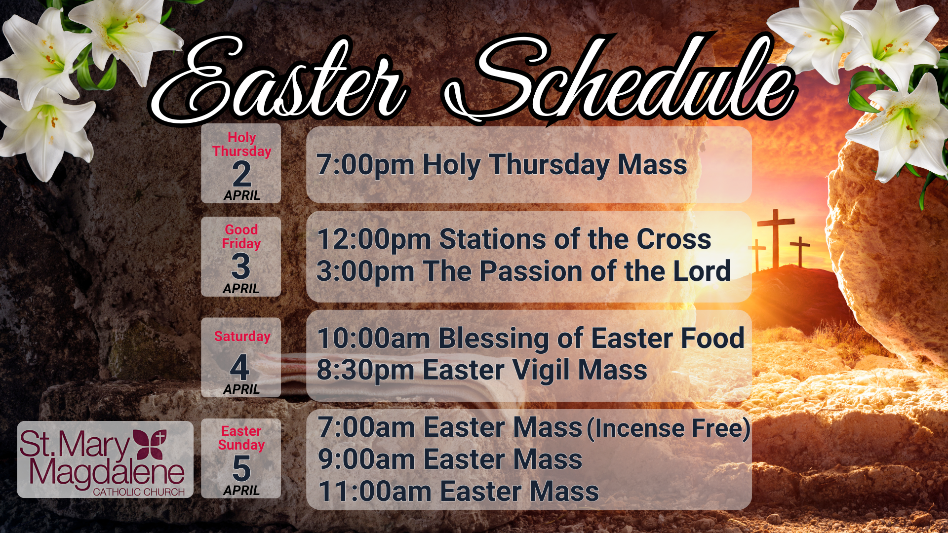Our Easter Holy Week Schedule.
